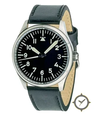 Eine Pilot-Uhr mit einem markanten 46.5mm Auftritt am Handgelenk, gefertigt aus Edelstahl mit einem Zifferblatt in schwarz und einer besonderen "matte"-Oberfläche.