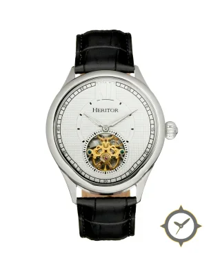 Eine Skelett-Uhr mit einem 36.5mm Gehäuse im Vintage-Stil gefertigt aus Edelstahl mit einem Zifferblatt in weiß und einer besonderen "guilloche (hobnail)"-Oberfläche.