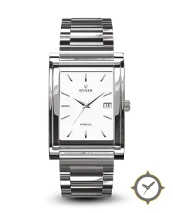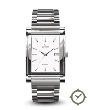 Eine Dress-Uhr mit einem 23mm Gehäuse im Vintage-Stil gefertigt aus Edelstahl mit einem Zifferblatt in weiß und einer besonderen "smooth"-Oberfläche.