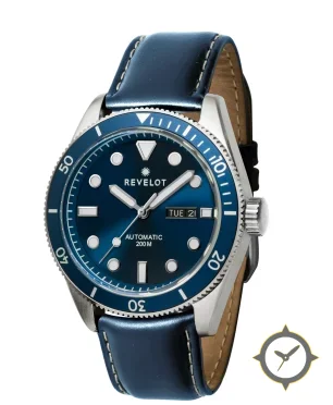 Eine Taucheruhr-Uhr mit einem markanten 52.5mm Auftritt am Handgelenk, gefertigt aus Edelstahl mit einem Zifferblatt in blau und einer besonderen "sunburst metallic"-Oberfläche.
