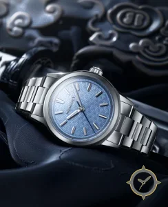 Eine Sport-Uhr mit einem markanten 42.5mm Auftritt am Handgelenk, gefertigt aus Edelstahl mit einem Zifferblatt in blau und einer besonderen "engine-turned geometric guilloche (repeating raised motif)"-Oberfläche.