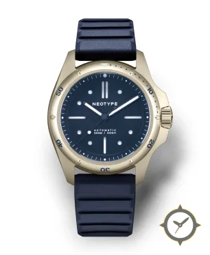 Eine Taucheruhr-Uhr mit einem markanten 47mm Auftritt am Handgelenk, gefertigt aus Bronze mit einem Zifferblatt in marineblau und einer besonderen "matte"-Oberfläche.