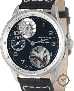 Eine Dress-Uhr gefertigt aus Edelstahl mit einem Zifferblatt in schwarz und einer besonderen "matte"-Oberfläche und einer praktischen Gangreserveanzeige.