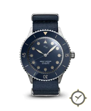 Eine Taucheruhr-Uhr mit einem markanten 45mm Auftritt am Handgelenk, gefertigt aus Edelstahl mit einem Zifferblatt in marineblau und einer besonderen "glossy lacquer"-Oberfläche.