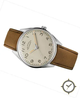 Eine Field-Uhr mit einem vielseitigen 38.5mm Gehäuse, das an fast jedes Handgelenk passt, gefertigt aus Edelstahl mit einem Zifferblatt in weiß und einer besonderen "matte"-Oberfläche.