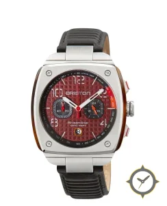 Eine Chronograph-Uhr mit einem vielseitigen 40.5mm Gehäuse, das an fast jedes Handgelenk passt, gefertigt aus Edelstahl mit einem Zifferblatt in rot und einer besonderen "waffle / textured grid"-Oberfläche.