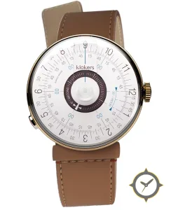 Eine Minimalistisch-Uhr mit einem vielseitigen 39.5mm Gehäuse, das an fast jedes Handgelenk passt, gefertigt aus Gold mit einem Zifferblatt in weiß und einer besonderen "matte"-Oberfläche.