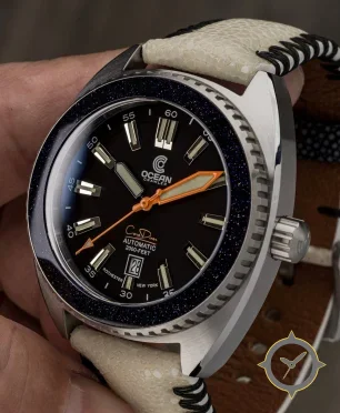 Eine Taucheruhr-Uhr mit einem markanten 42.5mm Auftritt am Handgelenk, gefertigt aus Edelstahl mit einem Zifferblatt in schwarz und einer besonderen "matte"-Oberfläche.