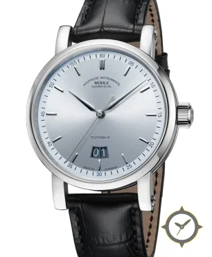 Eine Dress-Uhr mit einem 37mm Gehäuse im Vintage-Stil gefertigt aus Edelstahl mit einem Zifferblatt in silber und einer besonderen "sunburst (radial brushed)"-Oberfläche.