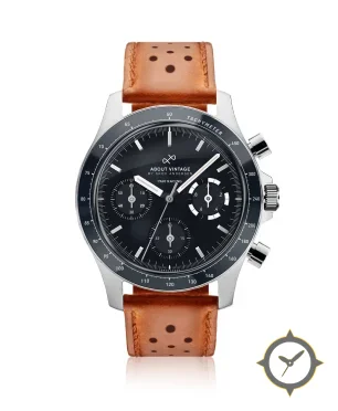 Eine Racing-Uhr mit einem markanten 46mm Auftritt am Handgelenk, gefertigt aus Edelstahl mit einem Zifferblatt in schwarz und einer besonderen "sunburst"-Oberfläche.
