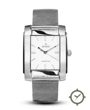 Eine Dress-Uhr mit einem 31mm Gehäuse im Vintage-Stil gefertigt aus Edelstahl mit einem Zifferblatt in weiß und einer besonderen "smooth lacquer"-Oberfläche.