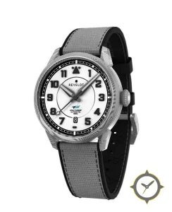 Eine Pilot-Uhr mit einem 36mm Gehäuse im Vintage-Stil gefertigt aus Edelstahl mit einem Zifferblatt in weiß und einer besonderen "matte"-Oberfläche.