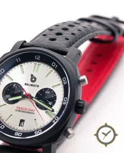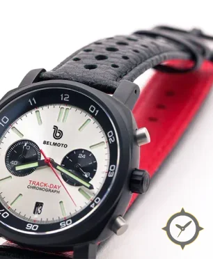 Eine Chronograph-Uhr mit einem markanten 44.5mm Auftritt am Handgelenk, gefertigt aus Edelstahl mit einem Zifferblatt in silber und einer besonderen "sunburst"-Oberfläche.