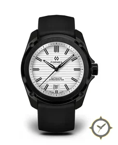 Eine Sport-Uhr mit einem vielseitigen 38mm Gehäuse, das an fast jedes Handgelenk passt, gefertigt aus Edelstahl mit einem Zifferblatt in weiß und einer besonderen "horizontal-striped"-Oberfläche.
