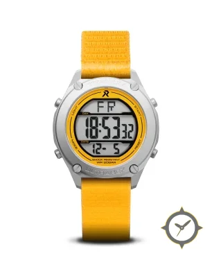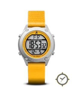 Eine Digital-Uhr mit einem vielseitigen 38mm Gehäuse, das an fast jedes Handgelenk passt, gefertigt aus Titan mit einem Zifferblatt in weiß und einer besonderen "matte"-Oberfläche.