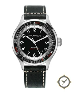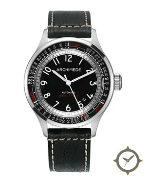 Eine Pilot-Uhr mit einem vielseitigen 38.5mm Gehäuse, das an fast jedes Handgelenk passt, gefertigt aus Edelstahl mit einem Zifferblatt in schwarz und einer besonderen "matte"-Oberfläche.