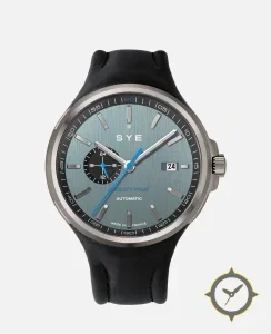 Eine -Uhr mit einem markanten 47mm Auftritt am Handgelenk, gefertigt aus Titan mit einem Zifferblatt in blau und einer besonderen "brushed"-Oberfläche.