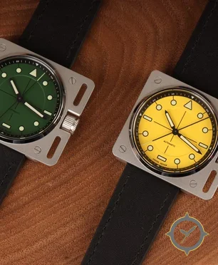 Eine Taucheruhr-Uhr mit einem markanten 42mm Auftritt am Handgelenk, gefertigt aus Edelstahl mit einem Zifferblatt in gelb und einer besonderen "smooth lacquer/painted"-Oberfläche.