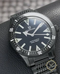 Eine Taucheruhr-Uhr mit einem markanten 43mm Auftritt am Handgelenk, gefertigt aus Edelstahl mit einem Zifferblatt in schwarz und einer besonderen "matte"-Oberfläche.