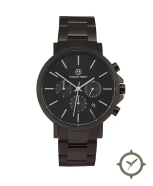 Eine Chronograph-Uhr mit einem markanten 41.5mm Auftritt am Handgelenk, gefertigt aus Edelstahl mit einem Zifferblatt in schwarz und einer besonderen "matte"-Oberfläche.