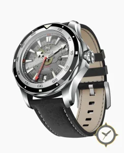 Eine Taucheruhr-Uhr mit einem vielseitigen 38.5mm Gehäuse, das an fast jedes Handgelenk passt, gefertigt aus Edelstahl mit einem Zifferblatt in grau und einer besonderen "skeletonized"-Oberfläche.
