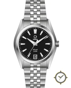 Eine Sport-Uhr mit einem vielseitigen 38mm Gehäuse, das an fast jedes Handgelenk passt, gefertigt aus Edelstahl mit einem Zifferblatt in schwarz und einer besonderen "matte"-Oberfläche.
