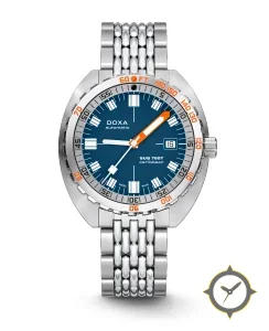 Eine Taucheruhr-Uhr mit einem markanten 47mm Auftritt am Handgelenk, gefertigt aus Edelstahl mit einem Zifferblatt in blau und einer besonderen "matte"-Oberfläche.