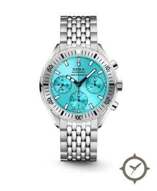 Eine Taucheruhr-Uhr mit einem vielseitigen 40mm Gehäuse, das an fast jedes Handgelenk passt, gefertigt aus Edelstahl mit einem Zifferblatt in türkis und einer besonderen "sunburst"-Oberfläche.