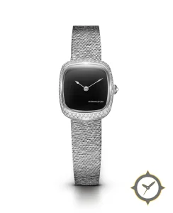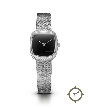 Eine Dress-Uhr mit einem 33.5mm Gehäuse im Vintage-Stil gefertigt aus Edelstahl mit einem Zifferblatt in schwarz und einer besonderen "lacquer"-Oberfläche.