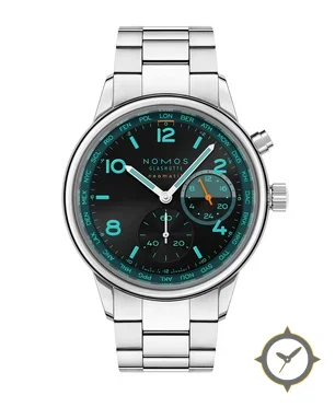 Eine Weltzeituhr-Uhr mit einem markanten 43mm Auftritt am Handgelenk, gefertigt aus Edelstahl mit einem Zifferblatt in schwarz und einer besonderen "matte with slight gradient"-Oberfläche, ideal für Weltenbummler dank der Weltzeit-Funktion.