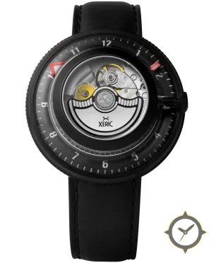 Eine Skelett-Uhr mit einem markanten 53mm Auftritt am Handgelenk, gefertigt aus Beschichtung mit einem Zifferblatt in silber und einer besonderen "exposed movement / open‑heart (visible rotor and mechanics)"-Oberfläche.