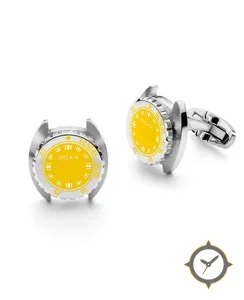 Eine Taucheruhr-Uhr gefertigt aus Edelstahl mit einem Zifferblatt in gelb und einer besonderen "glossy lacquer"-Oberfläche.