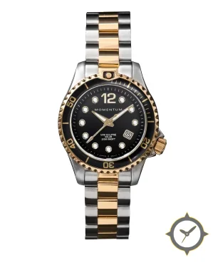 Eine Sport-Uhr mit einem 33mm Gehäuse im Vintage-Stil gefertigt aus Edelstahl mit einem Zifferblatt in schwarz und einer besonderen "lacquer"-Oberfläche und einer echten GMT-Funktion, mit der du eine zweite Zeitzone verfolgen kannst.