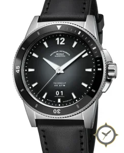 Eine Taucheruhr-Uhr mit einem vielseitigen 39.5mm Gehäuse, das an fast jedes Handgelenk passt, gefertigt aus Edelstahl mit einem Zifferblatt in schwarz und einer besonderen "sunburst (gradient)"-Oberfläche.