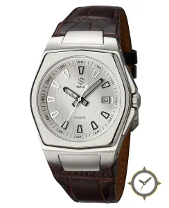Eine Luxus-Uhr mit einem markanten 43.5mm Auftritt am Handgelenk, gefertigt aus Edelstahl mit einem Zifferblatt in silber und einer besonderen "vertical brushed / satin"-Oberfläche.