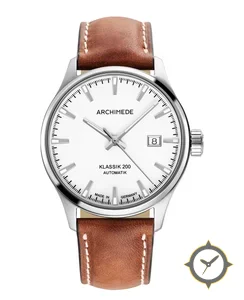 Eine Dress-Uhr mit einem markanten 46mm Auftritt am Handgelenk, gefertigt aus Edelstahl mit einem Zifferblatt in weiß und einer besonderen "matte"-Oberfläche.
