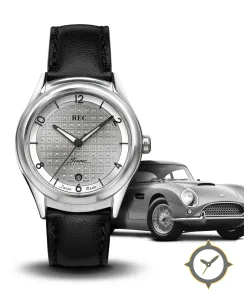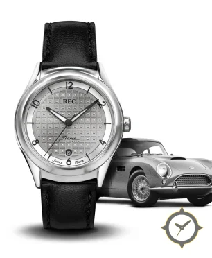 Eine Fahrer-Uhr mit einem vielseitigen 41mm Gehäuse, das an fast jedes Handgelenk passt, gefertigt aus Edelstahl mit einem Zifferblatt in silber und einer besonderen "embossed square-grid texture"-Oberfläche.