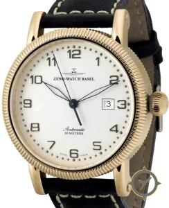Eine Pilot-Uhr gefertigt aus Gold mit einem Zifferblatt in weiß und einer besonderen "smooth"-Oberfläche.