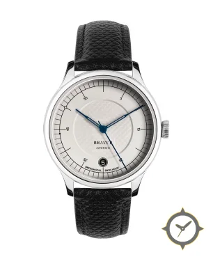 Eine Dress-Uhr mit einem vielseitigen 38.5mm Gehäuse, das an fast jedes Handgelenk passt, gefertigt aus Edelstahl mit einem Zifferblatt in weiß und einer besonderen "honeycomb guilloche center with smooth outer chapter ring"-Oberfläche.