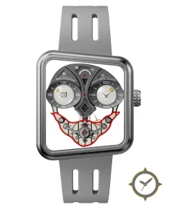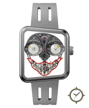 Eine Skelett-Uhr mit einem markanten 48mm Auftritt am Handgelenk, gefertigt aus Edelstahl mit einem Zifferblatt in schwarz und einer besonderen "open-worked / skeleton with exposed movement"-Oberfläche und einer praktischen Gangreserveanzeige.