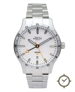 Eine GMT-Uhr mit einem vielseitigen 39.5mm Gehäuse, das an fast jedes Handgelenk passt, gefertigt aus Edelstahl mit einem Zifferblatt in weiß und einer besonderen "matte"-Oberfläche und einer echten GMT-Funktion, mit der du eine zweite Zeitzone verfolgen kannst.