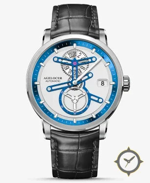 Eine Skelett-Uhr mit einem markanten 43mm Auftritt am Handgelenk, gefertigt aus Edelstahl mit einem Zifferblatt in weiß und einer besonderen "smooth matte with exposed movement elements"-Oberfläche.