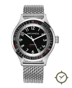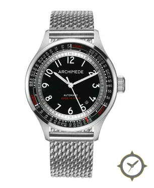 Eine Pilot-Uhr mit einem markanten 46mm Auftritt am Handgelenk, gefertigt aus Edelstahl mit einem Zifferblatt in schwarz und einer besonderen "matte"-Oberfläche.