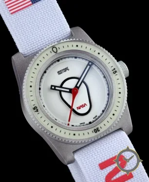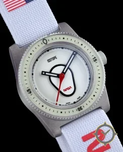Eine Taucheruhr-Uhr mit einem 37.5mm Gehäuse im Vintage-Stil gefertigt aus Edelstahl mit einem Zifferblatt in weiß und einer besonderen "matte"-Oberfläche.