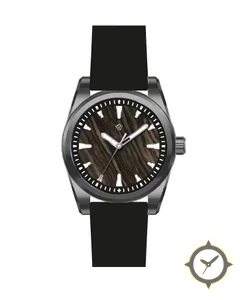Eine Field-Uhr mit einem vielseitigen 40.5mm Gehäuse, das an fast jedes Handgelenk passt, gefertigt aus Edelstahl mit einem Zifferblatt in braun und einer besonderen "wood-grain"-Oberfläche.