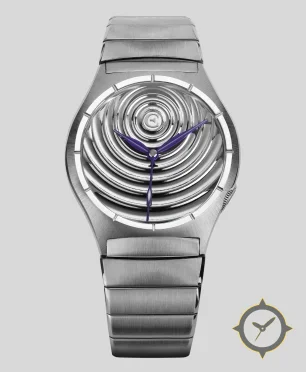 Eine Luxus-Uhr mit einem vielseitigen 38.5mm Gehäuse, das an fast jedes Handgelenk passt, gefertigt aus Edelstahl mit einem Zifferblatt in silber und einer besonderen "highly polished concentric stepped rings (radial/guilloché-like ripple finish)"-Oberfläche.
