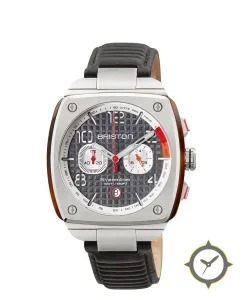 Eine Chronograph-Uhr mit einem markanten 47mm Auftritt am Handgelenk, gefertigt aus Edelstahl mit einem Zifferblatt in grau und einer besonderen "textured waffle / grid"-Oberfläche.