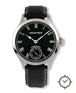 Eine Dress-Uhr mit einem markanten 43.5mm Auftritt am Handgelenk, gefertigt aus Edelstahl mit einem Zifferblatt in schwarz und einer besonderen "matte"-Oberfläche.