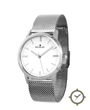Eine Minimalistisch-Uhr mit einem 37mm Gehäuse im Vintage-Stil gefertigt aus Edelstahl mit einem Zifferblatt in weiß und einer besonderen "matte"-Oberfläche.