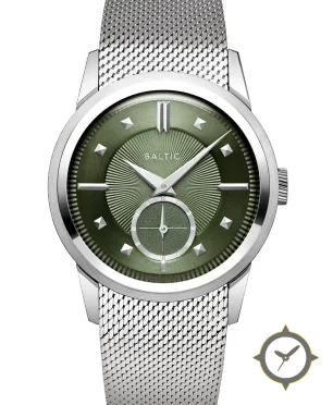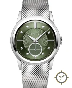 Eine Dress-Uhr mit einem 31.5mm Gehäuse im Vintage-Stil gefertigt aus Edelstahl mit einem Zifferblatt in grün und einer besonderen "sunburst guilloché (radial brushed)"-Oberfläche.